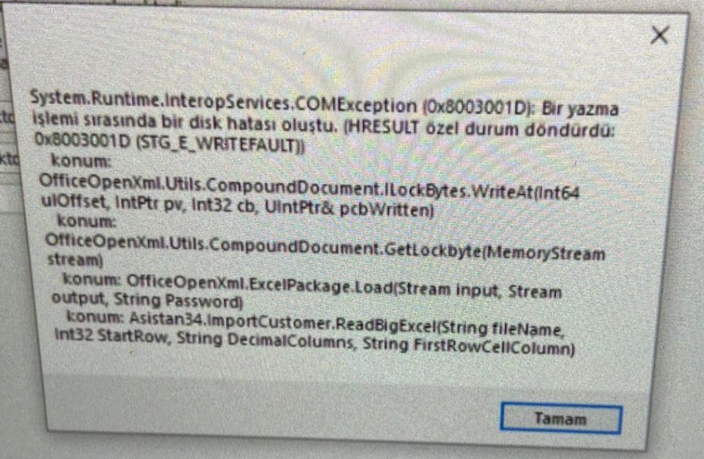 Asistan34 Yönetim panelinde Yukarıdaki şekilde bir hata alınıyorsa içeriye atılmaya çalışılan excel dosya uzantısı .xls’dir.