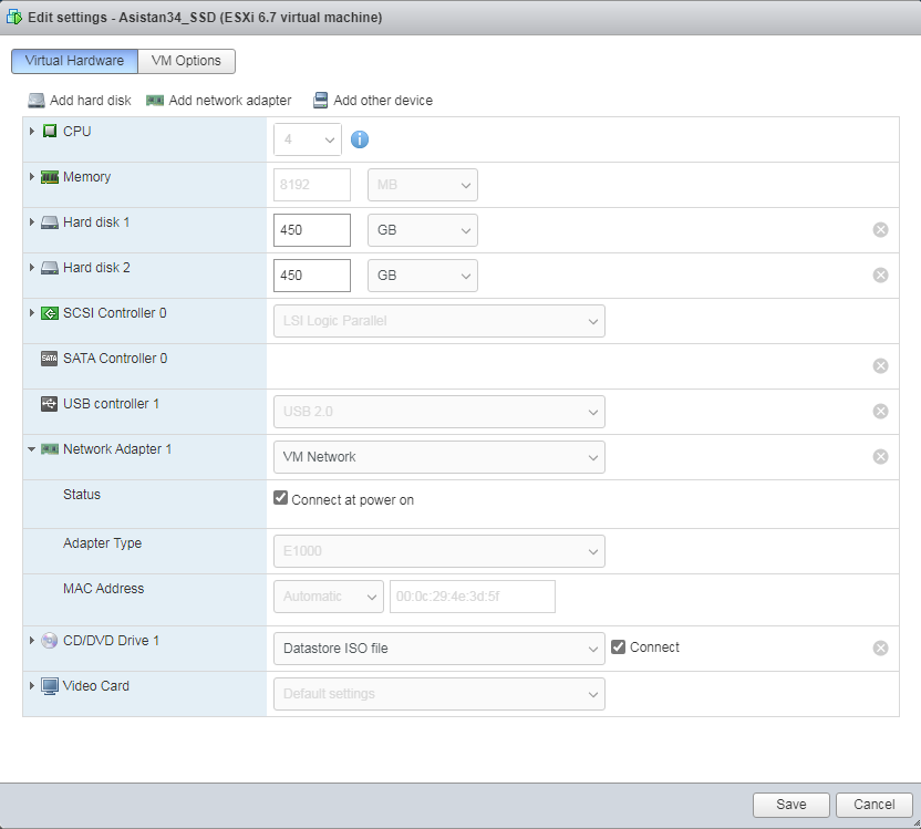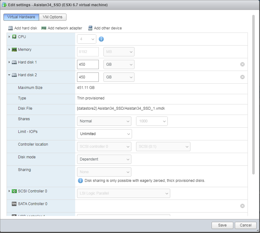 Donanım seçimleri resimlerdeki gibi yapılır. Harddisk1 450GB yazıldıktan sonra içine girilerek Thin Provisioned seçilir.