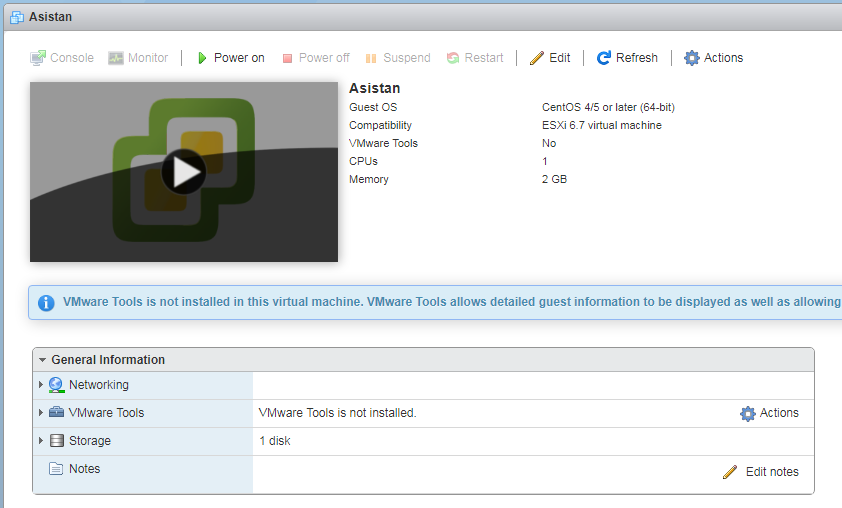 Sanal makinemiz oluştuktan sonra adına tıklayarak makine arayüzüne girilir.